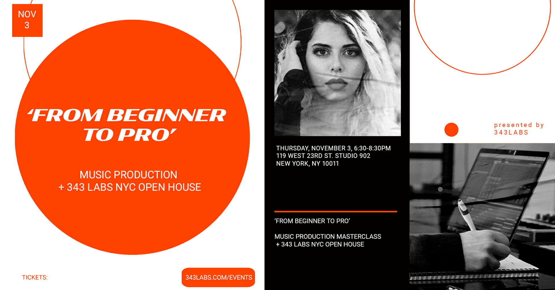 During the event, 343 Labs will be opening its doors for an Open House, where attendees can tour the facilities, learn about 343 Labs courses, and meet some of the instructors. This is a great way to get a feel for the community and programs at 343 Labs, meet fellow producers, and ask any questions you may have about our school.