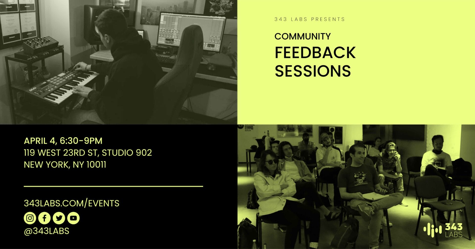 343 LABS 119 W 23rd St #700, New York, NY, United StatesCommunity Feedback Sessions are for NYC producers of all skill levels and genres to share their music and get feedback from peers. The event is also a great way to meet like-minded producers, hear new and exciting music, and hang out in a casual setting at 343 Labs NYC. Feel free to bring your friends […]