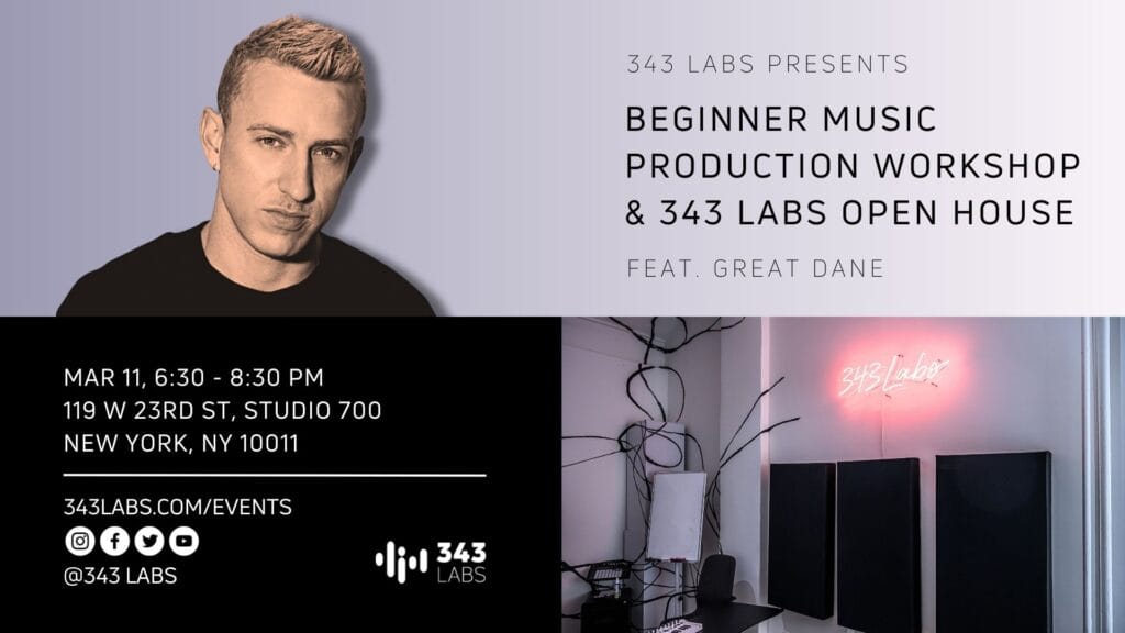 Meet Max Wild, founder of 343 Labs, and learn about the One-Year Producer Program, offered in NYC, Berlin and online. Ask questions about the program, meet some of the instructors, and get a feel for the community. Veteran instructors Great Dane and John Selway will be giving a demo on how to create a track in real-time and share their unique approach to music production. This session is a free event and will be hosted on Zoom, open to anyone interested in the One-Year Program.